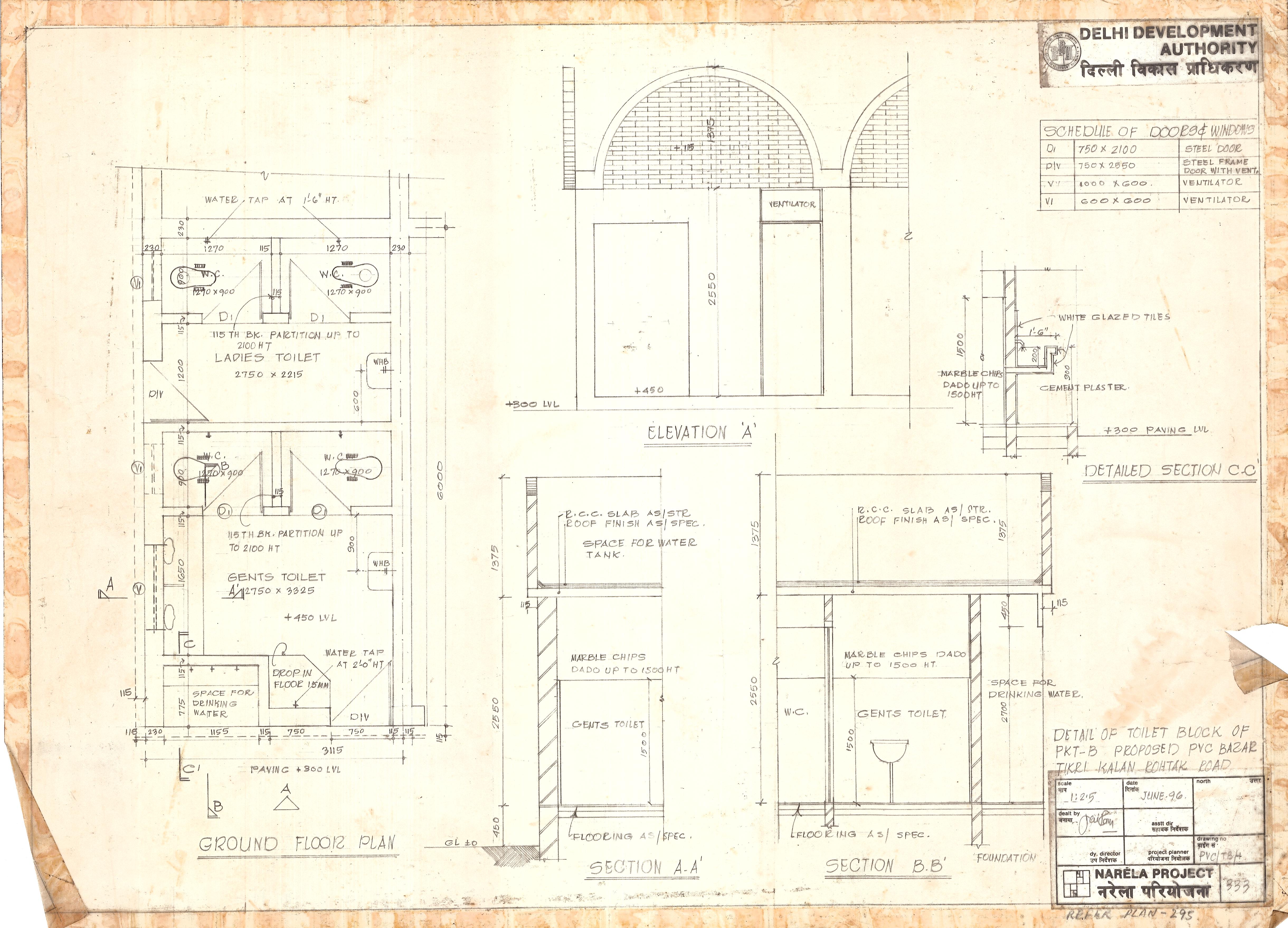 - Detail of Toilet Block of Pkt-B, Proposed, PVC Bazar, Bazar Tikri Kalan Rohtak Road.