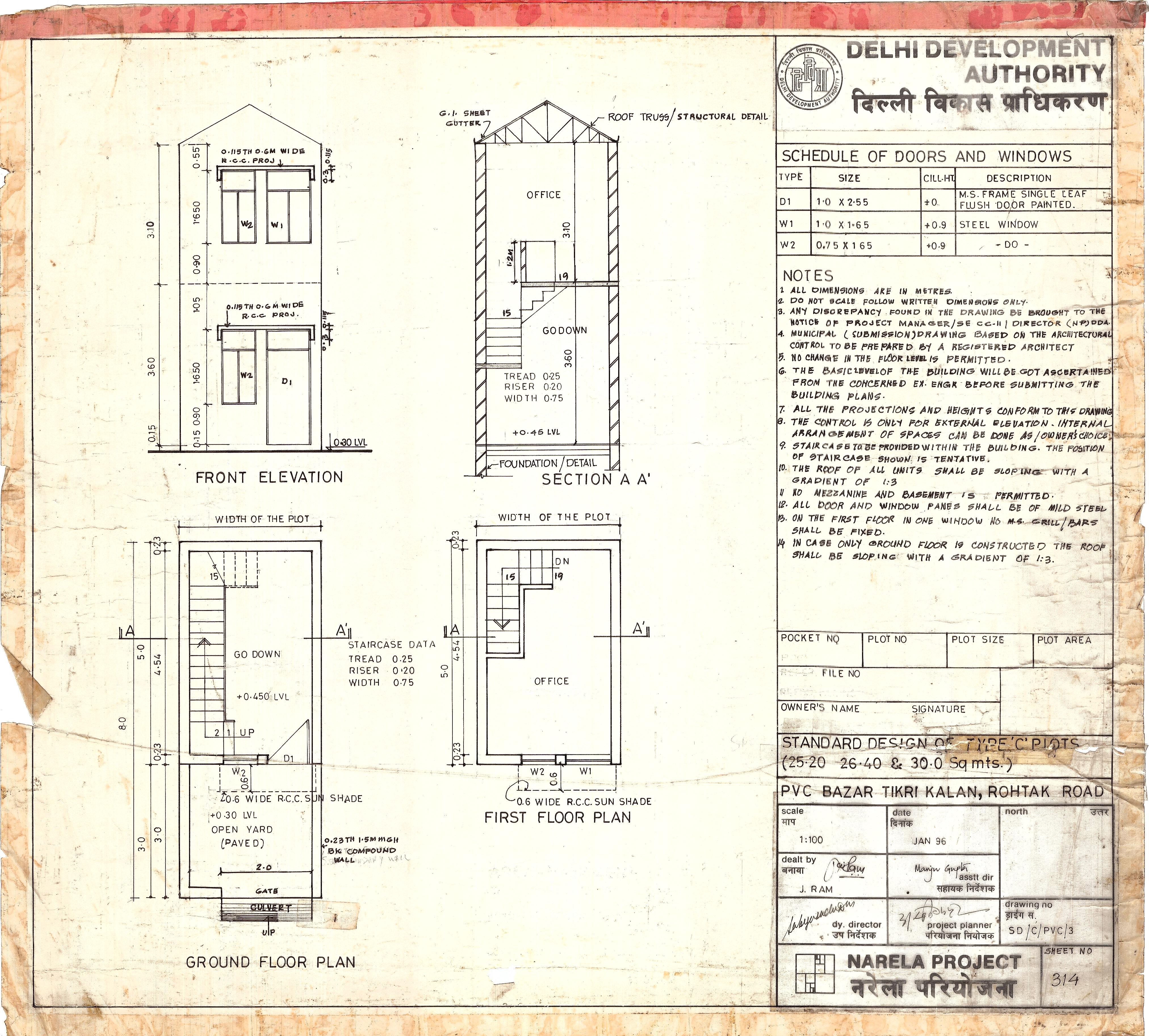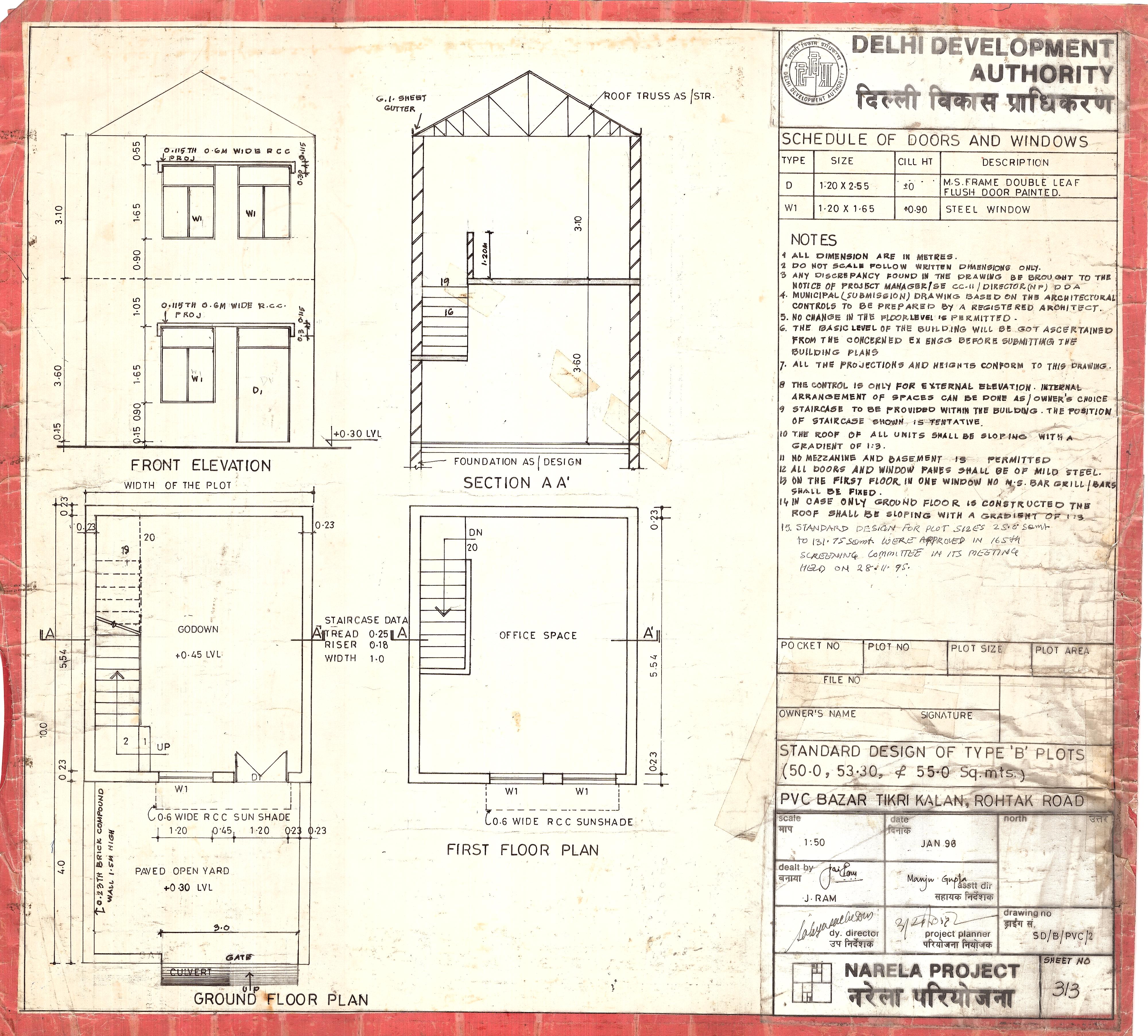 - Standard Plan Type-B, 40 to 48 Sqmt. (Plans, Elevation, Section) PVC Bazar, Tikiri Kalan, Rohtak Road, New Delhi