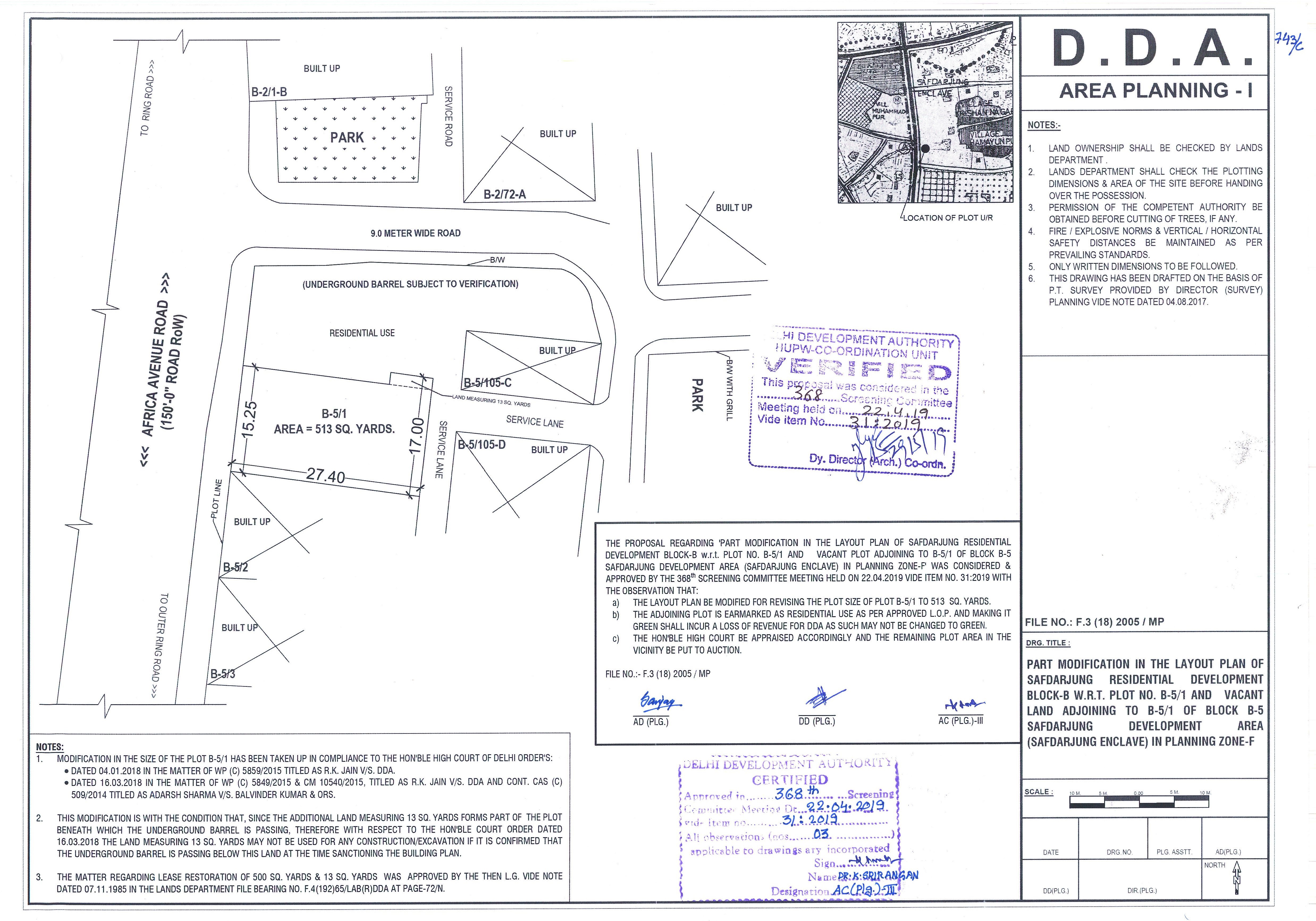 Part Modification in the layout plan of Safderjung Residential Development Block-B w.r.t. Plots No. B-5/1 and vacant plot adjoning to Plots no. B-5/1 of Block B-5 Safderjung Development Area (Safderjung Enclave)