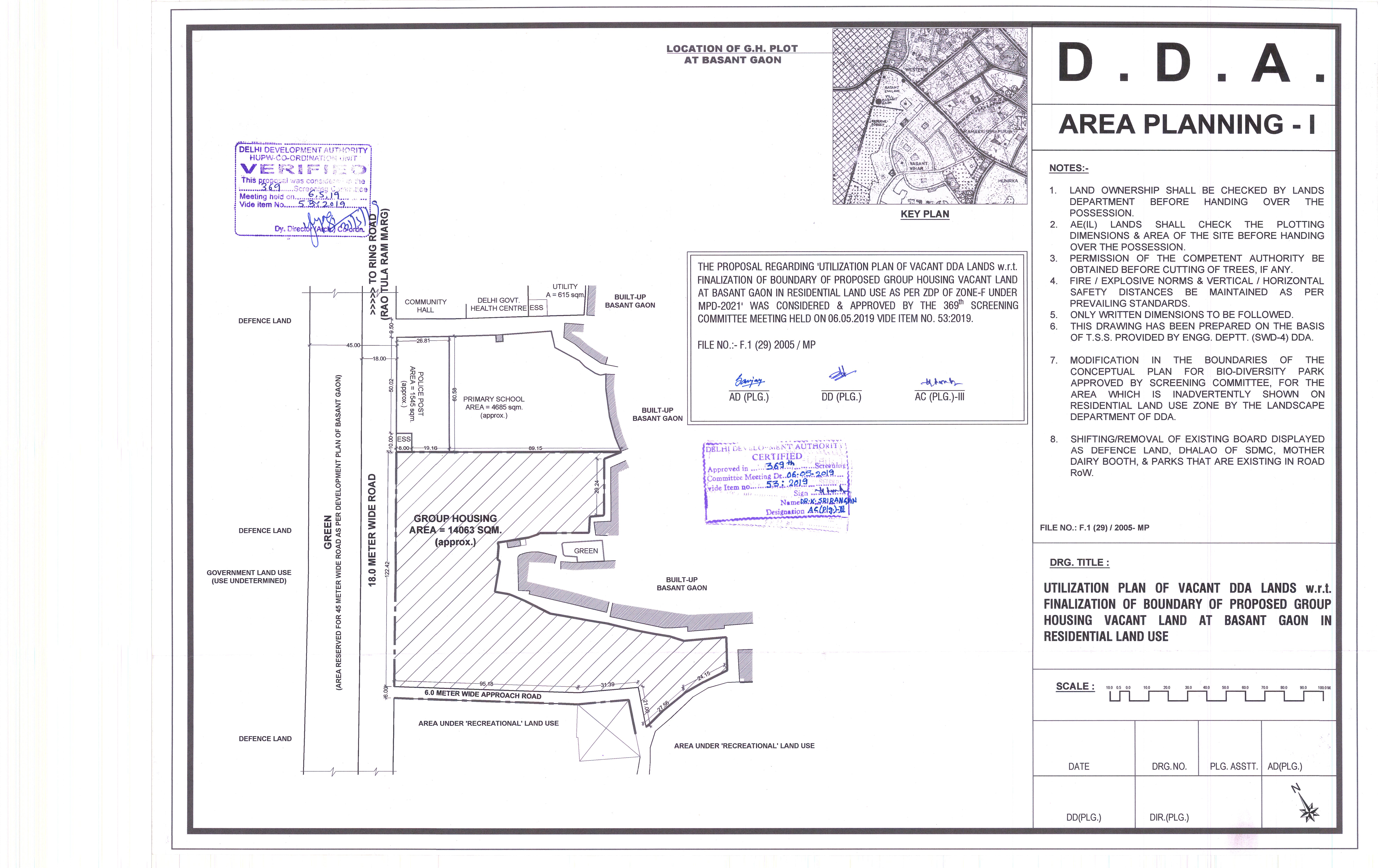 Utilization Plan of vacant DDA land w.r.t. finalization of boundary of proposed group housing vacant lands measuring 14063 sqm(approx. at basant village in residential land use as per ZDP of Zone-F under MPD-2021 Agenda